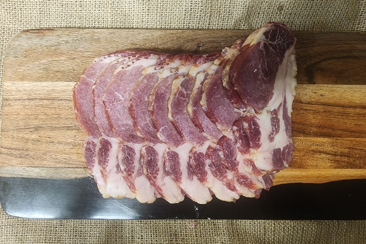 Canadian bacon is also known as "back bacon" since it is taken from the eye of the loin. It is much leaner than regular bacon.